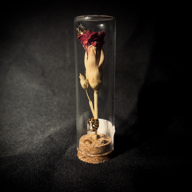 - Harmonia axyridis (coccinelle asiatique) développées sur une fleurs naturelle, séchée et stabilisée
